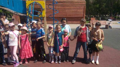 Бүгін балалар саябаққа барды. Онда олар әр түрлі әткеншектерге мініп, балмұздақ жеп, уақыттарын коңілді откізді.
