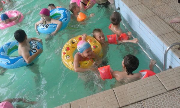 Бүгін балалар бассейнге барды. Содан келіп мектепке спорттық эстафета жарасы болды. Бүгінгі күн көңілді өтіп, балаларға ұнады.