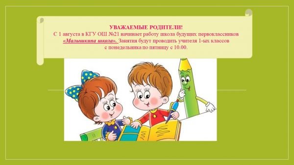 Тамыз айының 1-жұлдызынан бастап №21 НМ «Балақайлар мектебі» мектепалды даярлық курстары жүргізіледі. Курс аптасына 4 рет, дүйсенбі мен жұма аралығында сағат 10.…