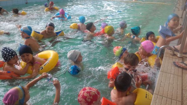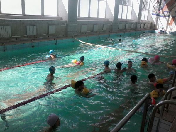 Бүгін балалар бассейнге барды. Онда тек қана шомылмай, әр түрлі жаттығулар жасады.