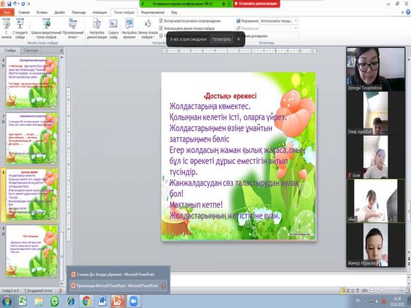 2021 жылдың 10 ақпанында «Дос болуды үйренеміз» тақырыбында 2 «В» сыныбында «Өзін- өзі тану» пәні мұғалімі Тусупбекова З.А. ашық сабақ өткізді.Оқушыларға «дос», «достық» ұғымдары туралы түсінік…