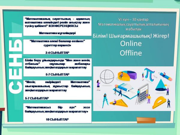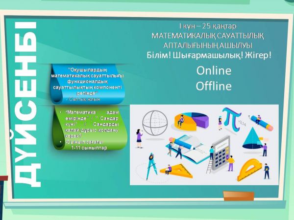 Қарағанды облысы білім беруді дамытудың оқу-әдістемелік орталығының ұйымдастыруымен өтетін «Математикалық сауаттылық» апталығына арналған жұмыс жоспары. #математикалықсауаттылықапталығы