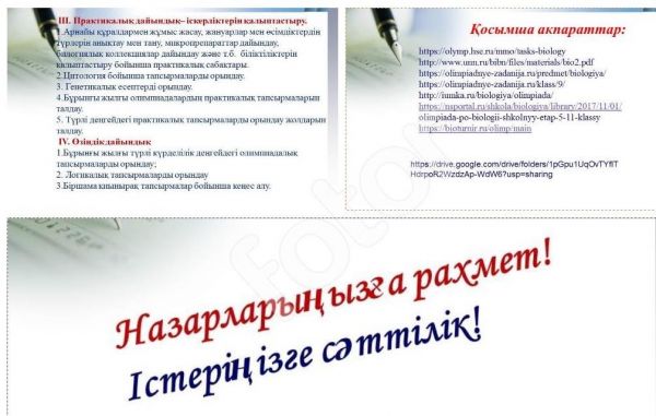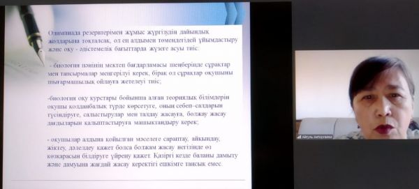 ҚББ биологтардың "Мұғалімнің шығармашылық дамуы" атты семинарында "Биология пәнінен олимпиадаға дайындық" тақырыбында Акторгаева А.Т баяндама оқыды.