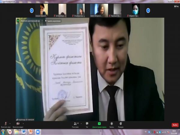 15.12.2020 күні «Алаш мұраты-тәуелсіз Қазақстан» қоғамдық пәндер кафедрасының онкүндігі аясында тарих пәні мұғалімі Садирбеков А.Т. Қазақстан тарихынан 10 «А» сыныбымен «Қазақтың ру-тайпалық құрылымы…