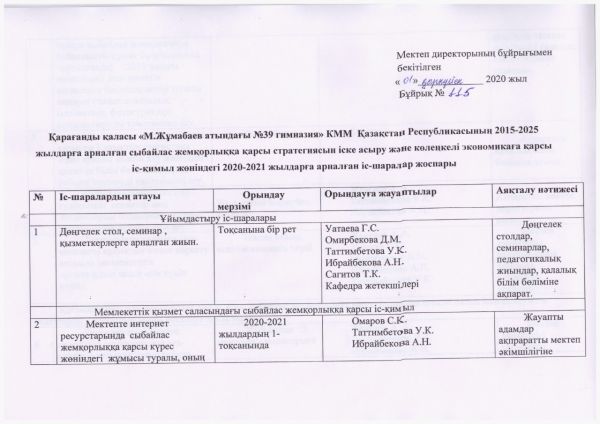 ►Сыбайлас жемқорлыққа қарсы стратегиясын іске асыру және көлеңкелі энономикаға қарсы іс-қимыл жөніндегі 2020-2021 жылда…