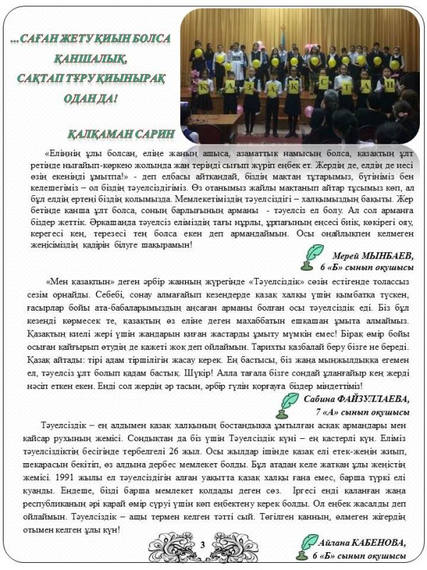 Мектепішілік «Мектеп тынысы» газетінің № 22 (49) саны жарық көрді.