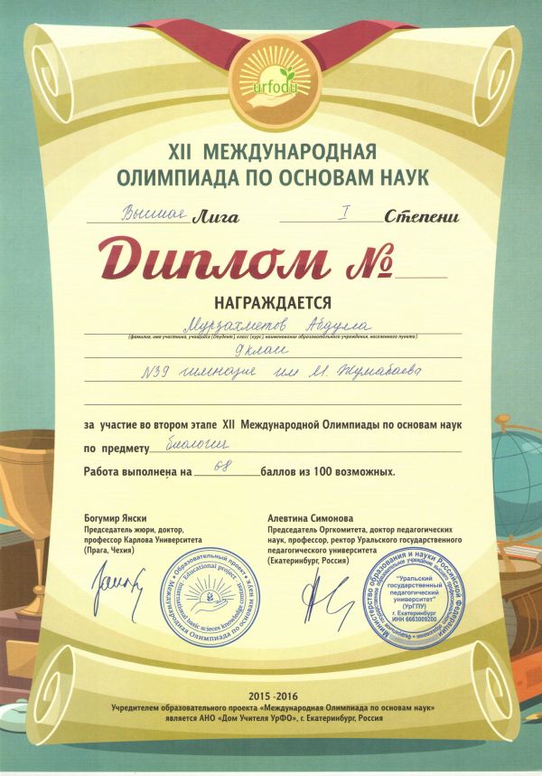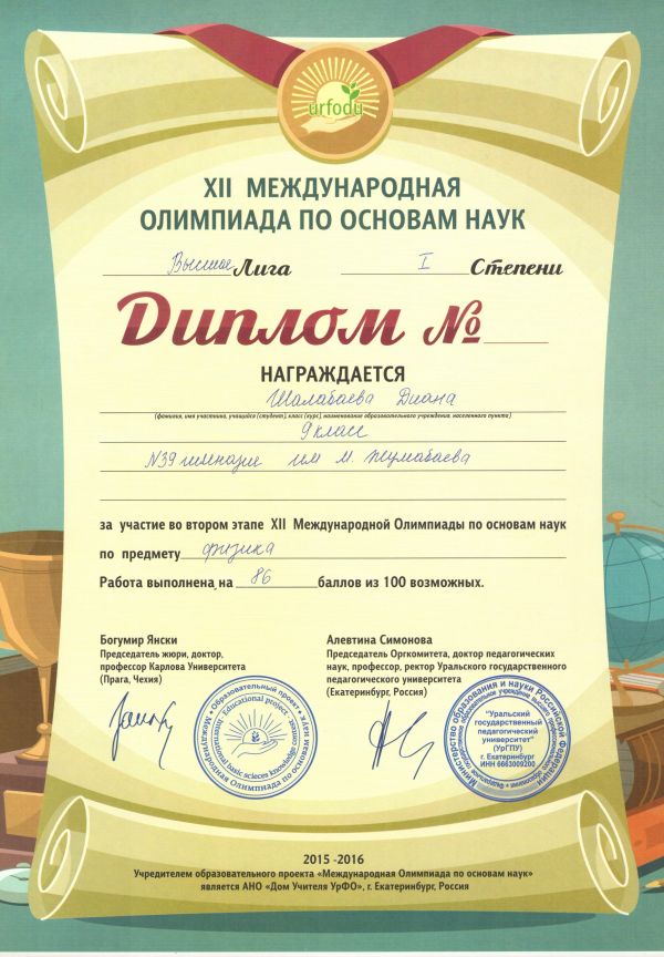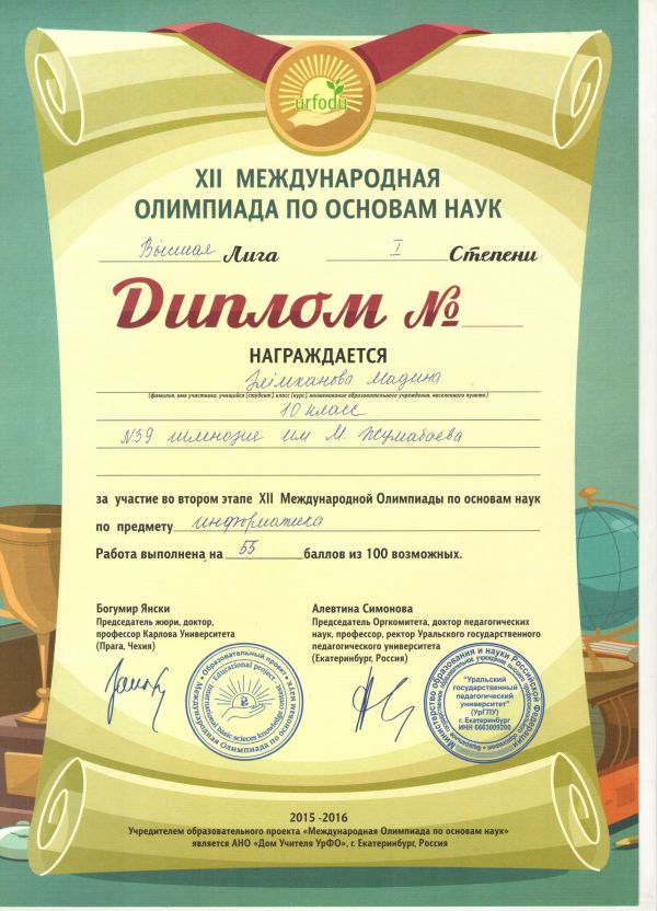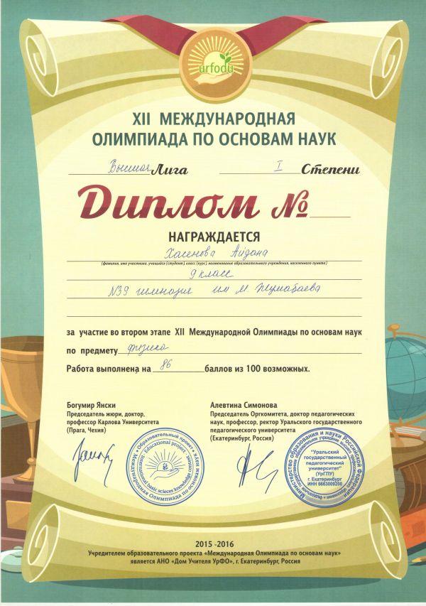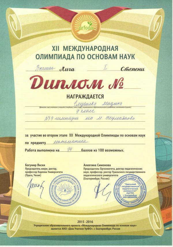 Учащиеся гимназии награждены Дипломами за высокие результаты, показанные в Высшей Лиге XII Международной Олимпиады по основам наук, по предметам: английский и&n…