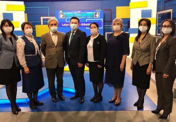 "Сөз сұраймын" ток-шоуына қатысып, латын әліпбиінің жетілдірілген нұсқасы жайлы, гимназиямызда атқарылып жатқан іс-шаралар жайлы өз ойын ортаға салды.