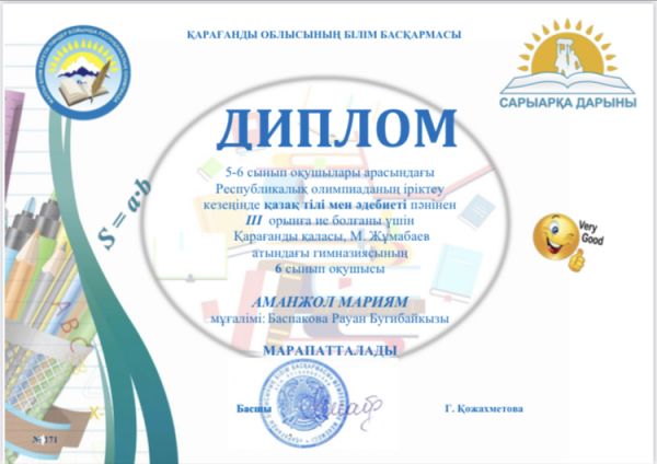 5-6 сынып оқушылары арасында Республикалық олимпиаданың іріктеу кезеңінде пәндер бойынша жүлделі орын алған оқушыларымызды құттықтаймыз!