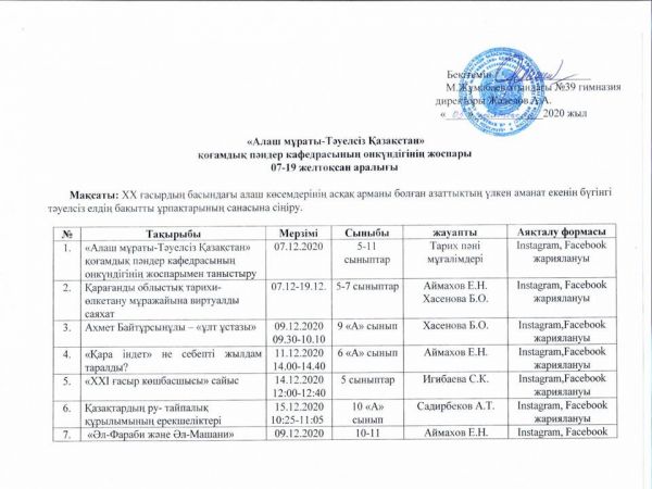 11.12.2020 күні «Алаш мұраты-тәуелсіз Қазақстан» қоғамдық пәндер кафедрасының онкүндігі аясында тарих пәні мұғалімі Ермек Насратуллаевич дүние жүзі тарихынан 6 «А» сыныбымен «Қара індет» не себепті жы…