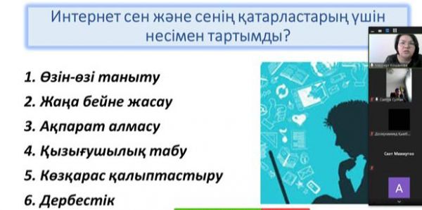 Интернетке тәуелділіктің алдын алу мақсатында 5-9 сынып оқушыларымен гимназия психологтары Zoom платформасы арқылы кездесу өткізді. Кездесу барысында интернет желісін дұрыс пайдалану, қатерлі қауіптен…