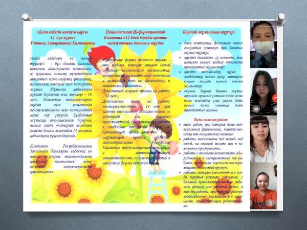 «Бала еңбегін қанауға қарсы 12 күн күрес» ұлттық ақпараттық науқаны шеңберінде бала еңбегінің ең нашар түріне жол бермеу және балаларға қатысты зорлық-зомбылықтың алдын алу мақсатытында «Бала еңбегін…