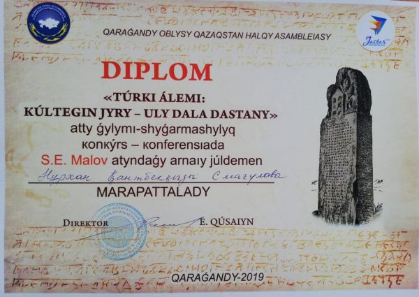 «Түркі әлемі: Күлтегін жыры – ұлы дала дастаны» атты ғылыми-шығармашылық конкурс – конференциясында арнайы жүлдемен Смағұлова Нұрхан Қантбекқызы дипломмен марапатталды.…