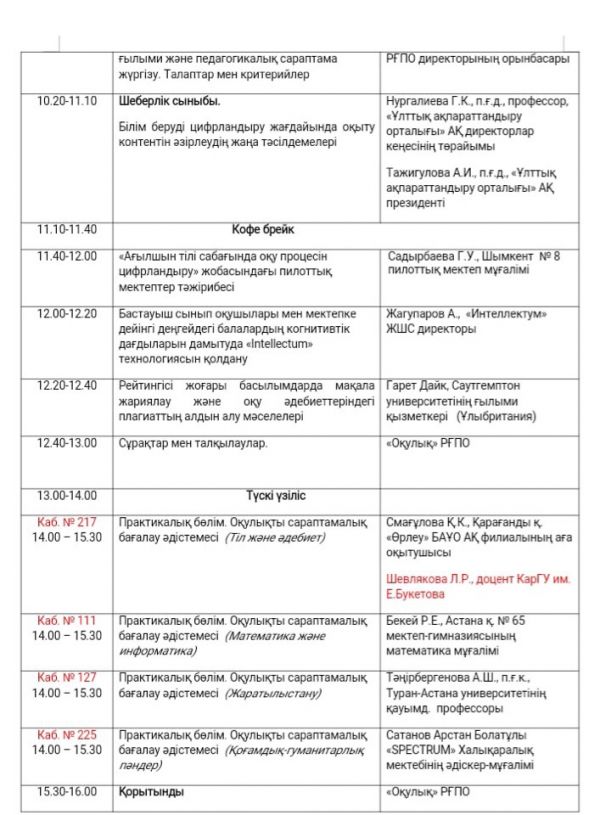 Оқулық авторлары мен сарапшыларына арналған Республикалық оқыту семинары