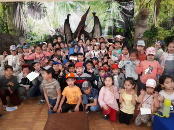 Гимназия жанындағы «АРАЙ » жазғы сауықтыру лагерінің демалушылары таңертеңгілік жаттығудан кейін "Динозалға" барып қайтты.