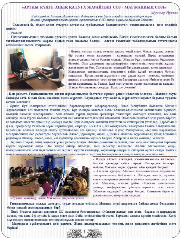 Мектепішілік «Мектеп тынысы» газетінің кезекті саны жарық көрді.