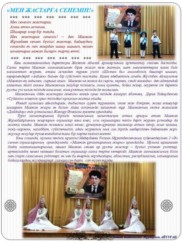 Астана қаласының 20 жылдығы аясында, Халықаралық би күніне арналған облыстық «БИ ӘЛЕМІ» конкурс-фестиваліне қатысып, жас ұрпақ тәрбиелеу жолында, еліміздегі ұлт…