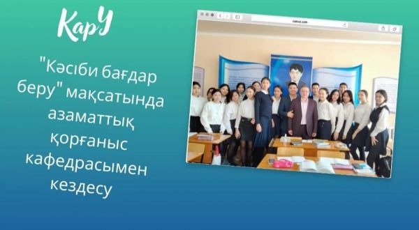 9-11 сынып оқушыларына кәсіптік бағдар беру мақсатында «Академик Е.А. Бөкетов атындағы Қарағанды университеті» азаматтық және еңбек құқығы кафедрасымен кездесу аға оқытушысы, Есмағанбет…