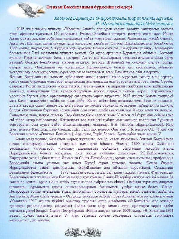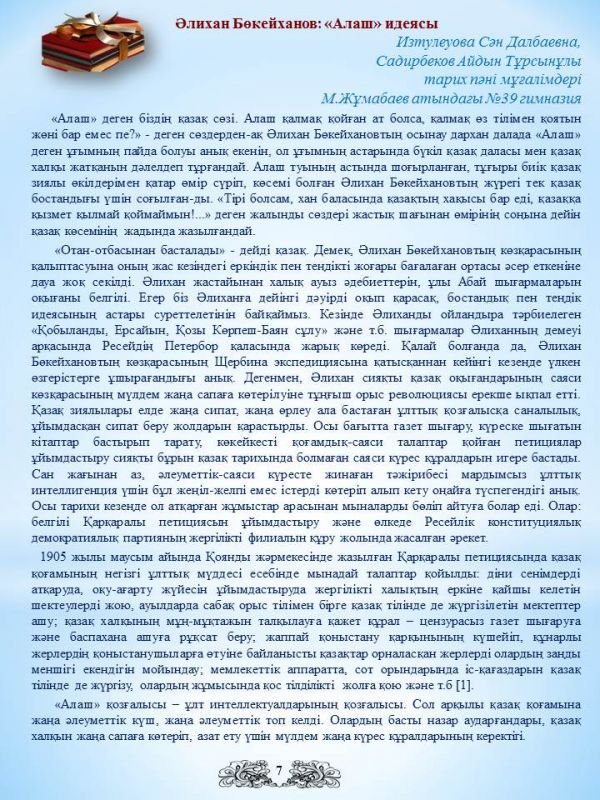 Материалы научно-практической конференции к 150- летию А. Бокейханова «Алаштың ардақты ардагері» изданы в виде сборника.
