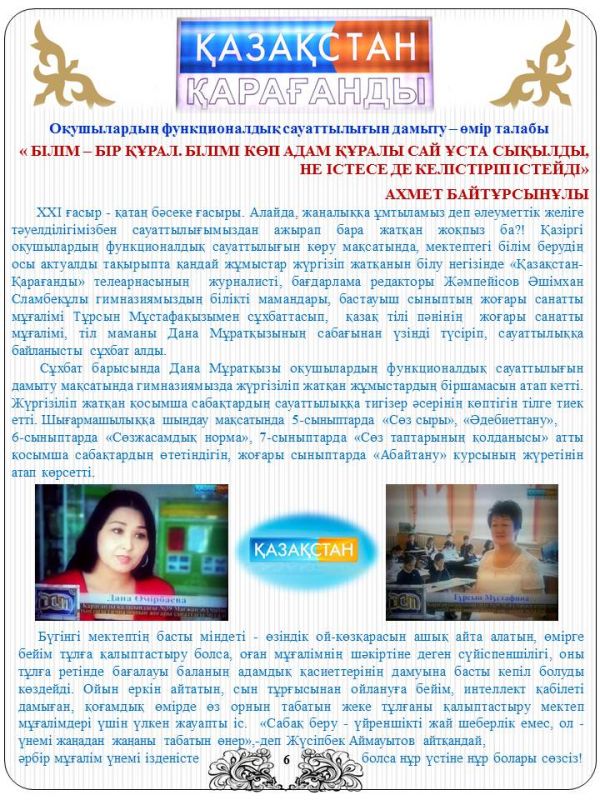 Мектепішілік "Мектеп тынысы" газетінің кезекті саны жарық көрді.