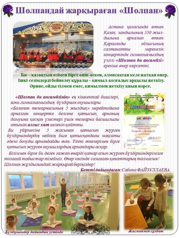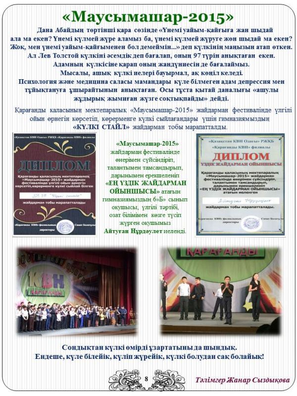 Гимназияның көңілділер мен тапқырлар клубы қозғалысын дамыту, жас буынды тәрбиелеу, жастардың бос уақытын тиімді пайдалануды насихаттау мақсатында, қазақ хан…