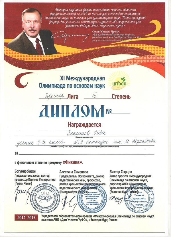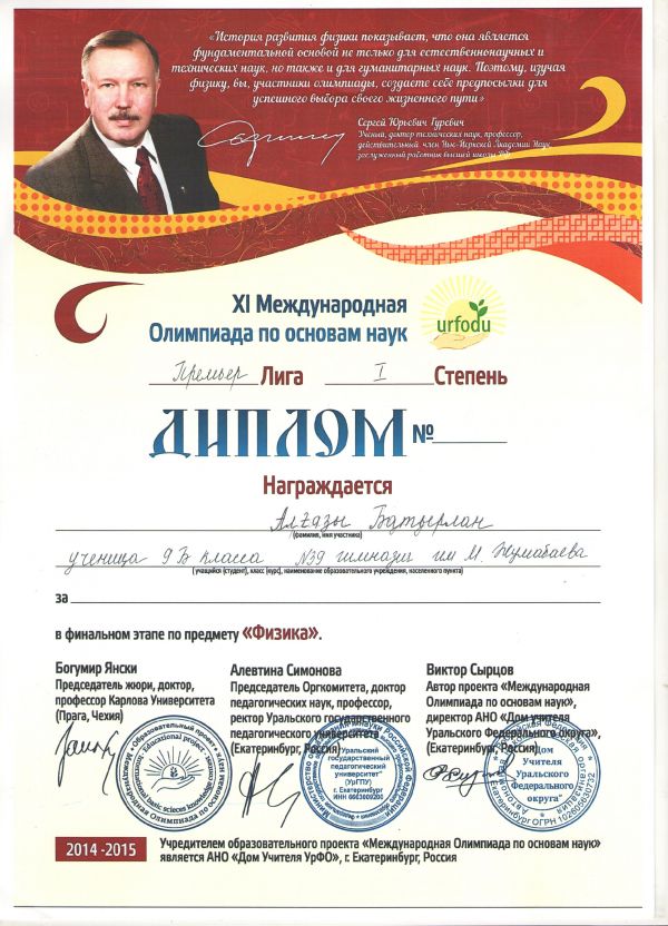 Физикадан өткен олимпиадада 1 орын иеленгені үшін Рахматулин Саматқа Қазтұтынуодағы Қарағанды экономикалық университетінде 2015-2016 оқу жылында оқудың ақысын…