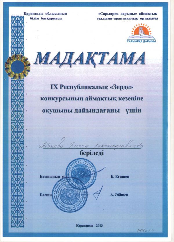 IX Республикалық «Зерде» конкурсының аймақтық кезеңіне оқушыларды дайындағаны үшін М.Жұмабаев атындағы №39 гимназияныңағылшын…