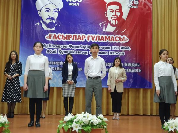 3 наурыз күні гимназиямызда Әл-Фараби мен Абайдың өнегелі өмірімен таныстыру, заңғар тұлғалардың даналығы мен рухани асыл мұраларын насихаттап, өлеңдерін, әндерін мәнерлеп айтқызу мақсатында "Ғ…