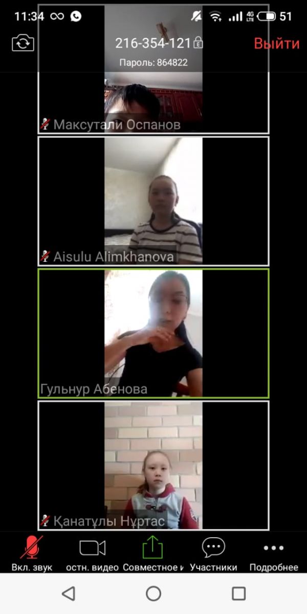18 мамыр күні 4 «В» сынып оқушыларына ZOOM платформасы арқылы Қарағанды облысы аумағындағы халықтың шомылуға пайдаланатын су қоймалары жайында ақпарат беріліп, жалпы су қоймаларын пайдал…