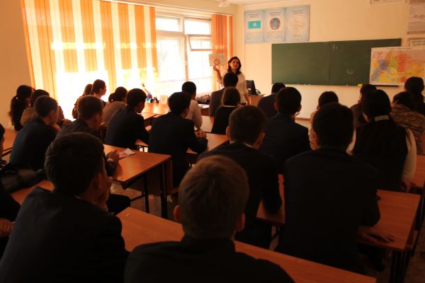 Мектеп психологы С.Б.Ильяшова және әлеуметтік педагог А.Т.Уапова 10-11 сынып оқушыларымен кәсіби бағдарға байланысты кеш өткізді. Мақсаты: мамандық туралы түсінік беру, оқушыл…