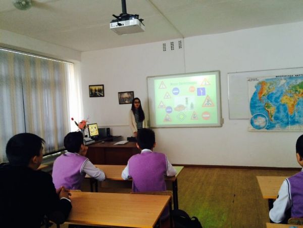 18.01.2016 жылы 9 в сыныбында «Жолда жүру ережелерін үйренеміз» атты сынып сағаты өткізілді. Максаты: Оқушыларды жолда дұрыс жүріп тұруына тәрбиелеу. Оқушыларғ…