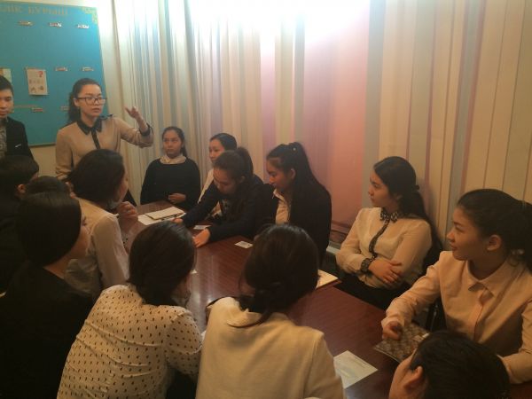 С.Саттаров атындағы №57 мектеп-лицейінде 10.03.2015 жылы Тәлімгер Еділбай Г.А «Киелі киіз үй» тақырыбында Жас Ұлан ұйымының оқушылармен с…