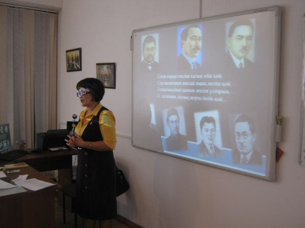 С.Саттаров атындағы №57 мектеп-лицейінің 11 «Ә» сыныбында «С.Сейфуллин-сезімтал, ойшыл, лирик ақын» тақырыбында Мусина Анар Ермековна қа…