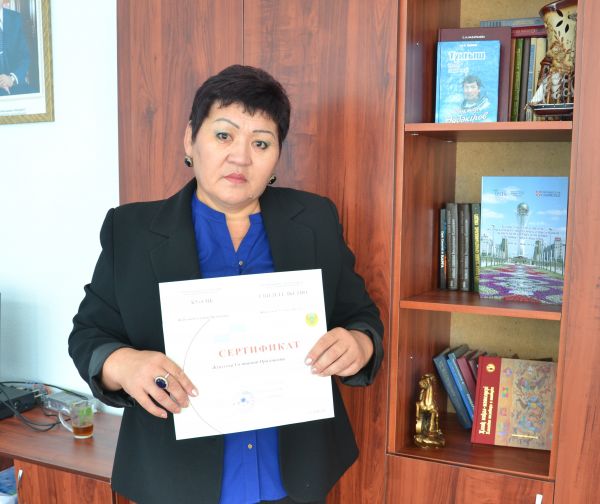 С.Саттаров атындағы №57 мектеп-лицейінде І деңгейлі Кембридж университетінің оқыту әдістемесі бойынша курсын оқып келген физика пәні мұғалімі Ш.К. Сатенова, биология пәні мұғалімі Б. Чунгэл, м…