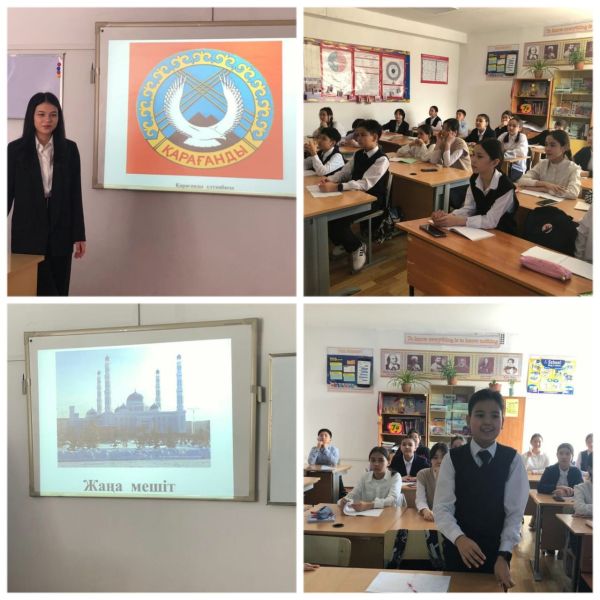 8 «Б» сынып оқушыларымен "Қарағанды менің сүйікті қалам" тақырыбында тәрбие сағаты өтті. Оқушылар өз туған өлкелері жайында ақпараттармен алмасты.
