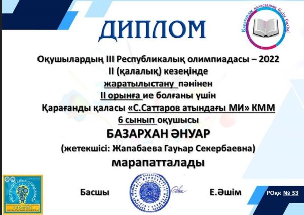 Республикалық олимпиаданың қалалық кезеңінің жеңімпаздары!!! ҚҰТТЫ БОЛСЫН!!!