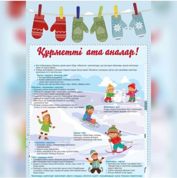 Бастауыш сыныптарда қысқы демалыс кезіндегі қауіпсіздік ережелері бойынша түсінік жұмысы жүргізілді. Оқушының қауіпсіздігін сақтауға арналған нұсқаулық құрылды.