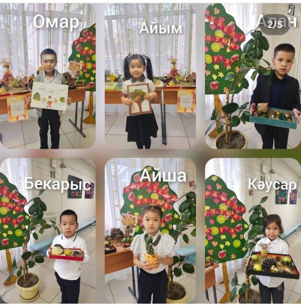 1 "А" сынып оқушылары "Сиқыршы күз" атты тақырыпта ата-аналарымен бірігіп жеміс-жидек, көкөністерден бұйымдар жасады. С/Ж: Маратова С.М.