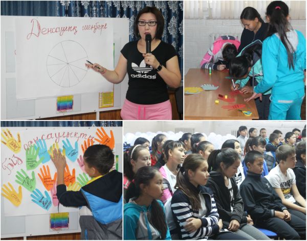 05.09.2015 күні біздің мектебімізде денсаулық күніне арналған іс – шарада 8 – сыныптармен «Біз денсаулықты қолдаймыз!» тақырыбында психологиялық тренинг өткізілді.