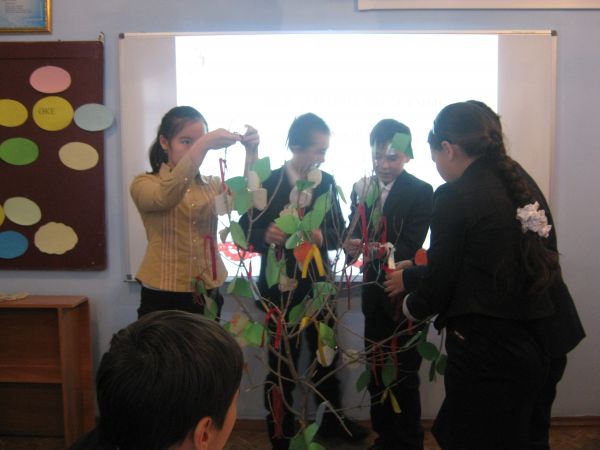 С.Саттаров атындағы  №57 мектеп-лицейінде 26.11.14 күні қазақ тілі  апталығының өтуіне байланысты өзі-өзі тану пәнінің мұғалімі Махажанова Р.А  7а сыныбында  « Тамырын жайы…