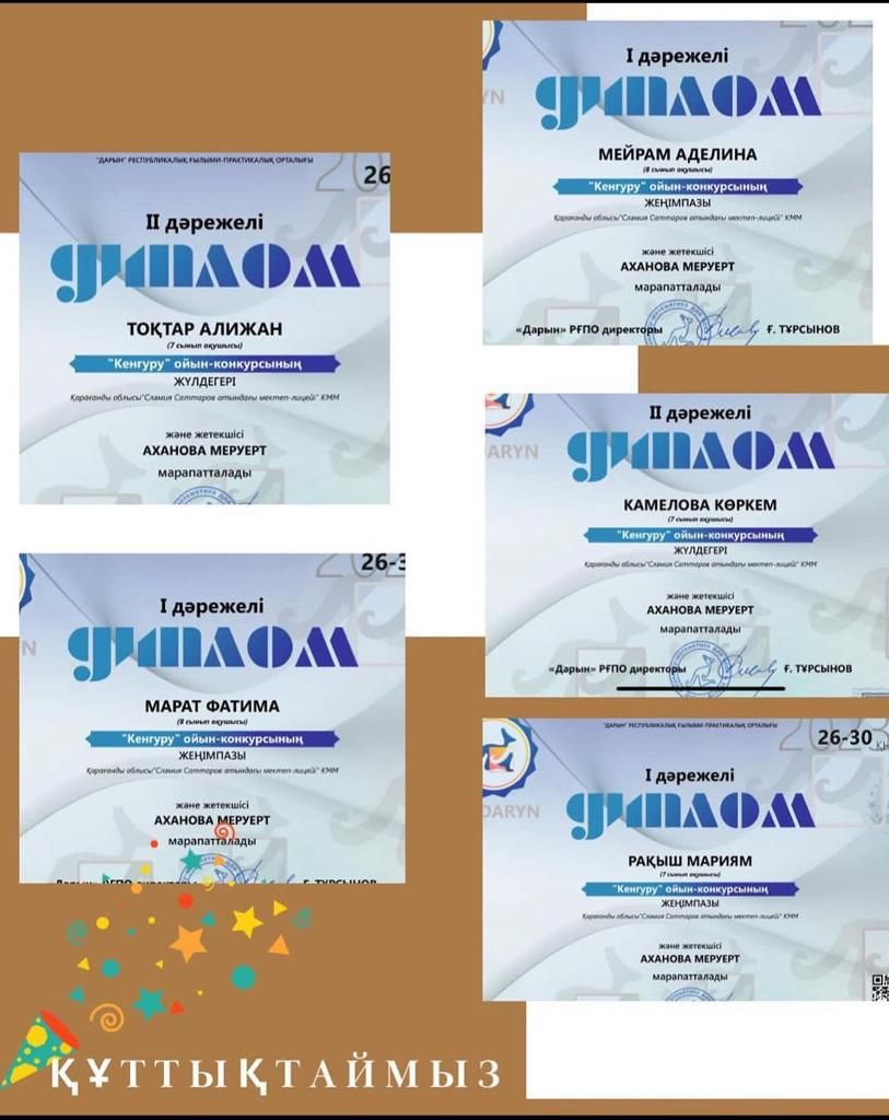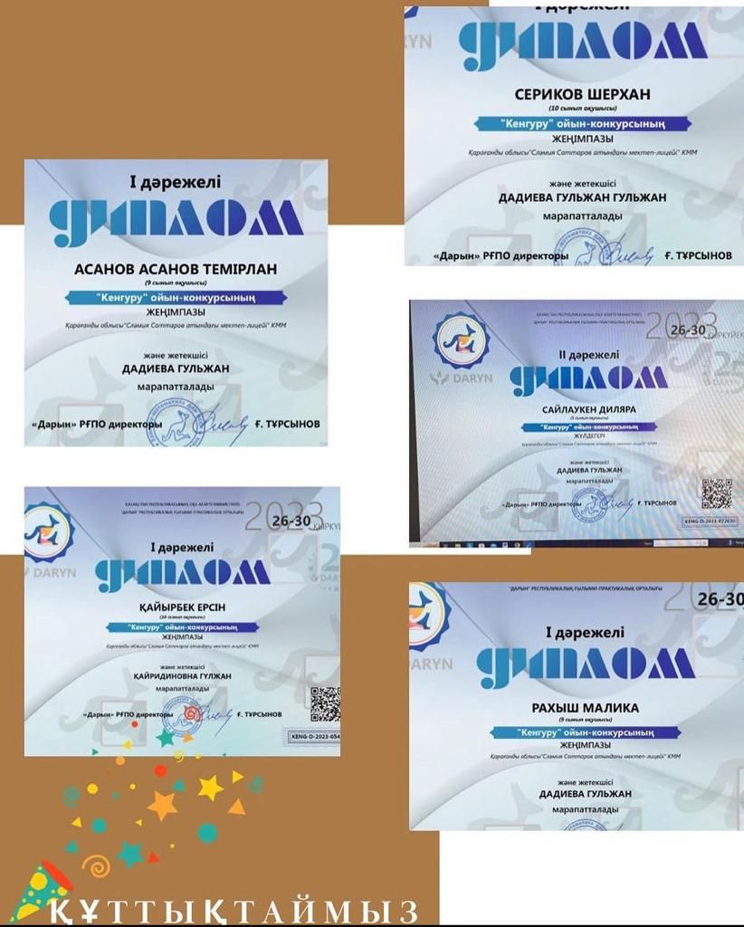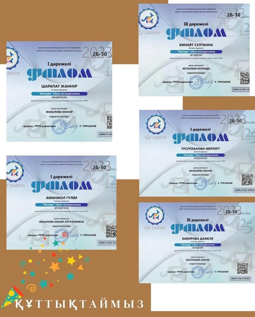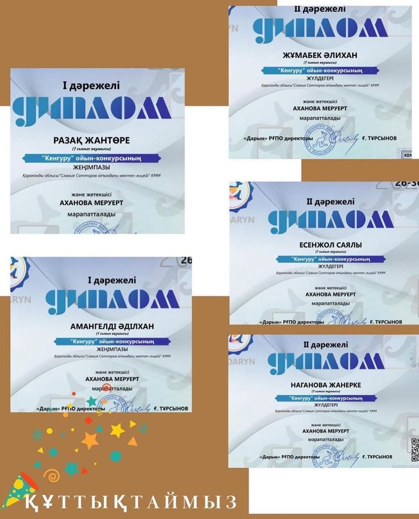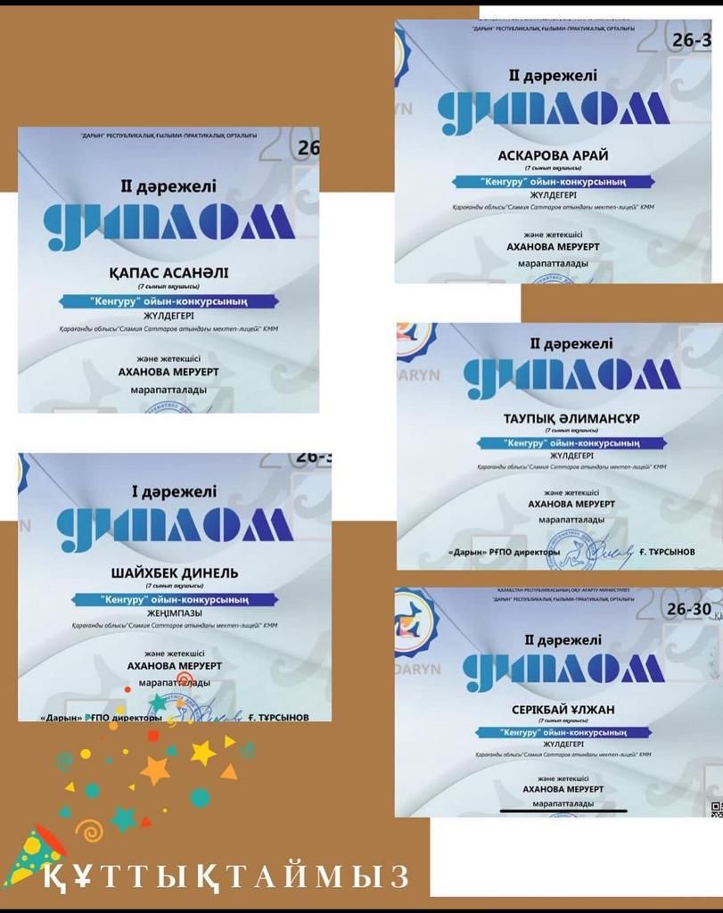 Математика пәнінен “Кенгуру” ойын конкурсынан жүлделі орын алған оқушыларды құттықтаймыз!!! @goroo_krg @umckrg