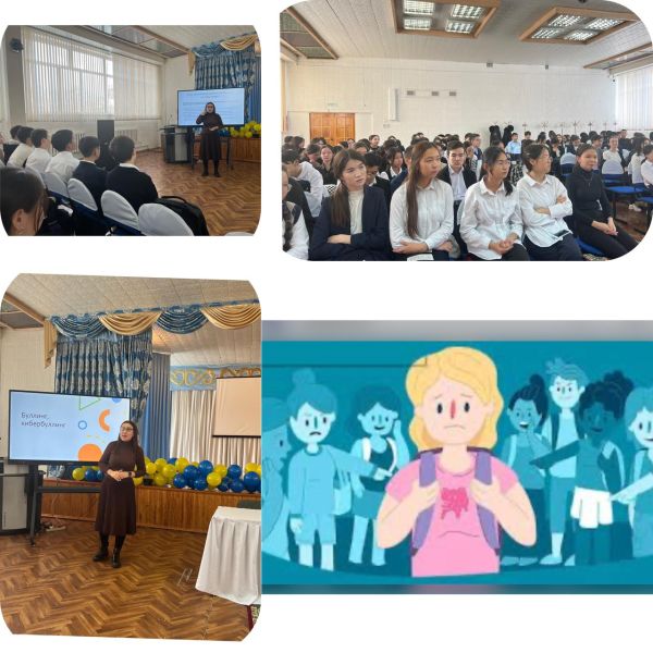 “Бала құқығы -адам құқығы” республикалық онкүндікті ұйымдастыру және өткізу жұмыс жоспары бойынша мектеп психологі С.Б.Ильяшова “Буллинг және кибербуллингтен қалай қ…