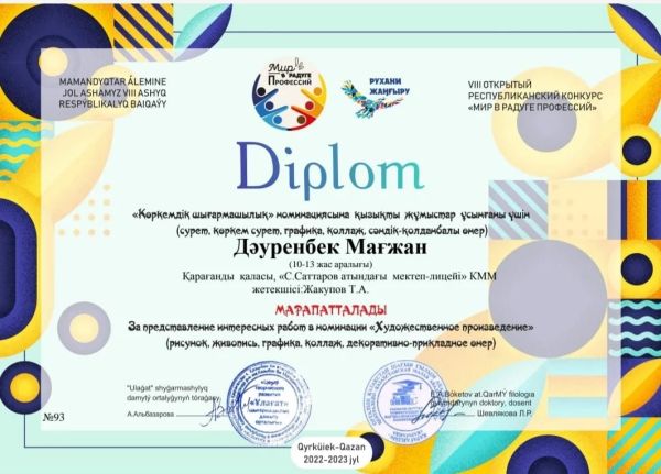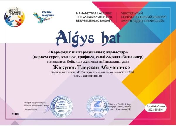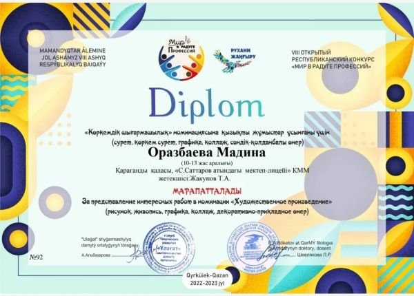 Мамандықтар әлеміне жол ашамыз "Vlll Aшық Республикалық байқауында мектеп-лицейіміздің оқушылары жүлделі орындарға ие болды. ll Дәрежелі дипломмен Ниязбекова Айару марапатталды. Құттықтай…