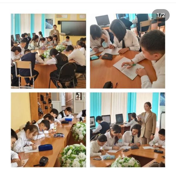 Қазақстан халқы тілдері күніне және Ахмет Байтұрсынұлының 150 жылдығына арналған облыстық ашық диктант 6-7-сынып оқушылары арасында алынып, нәтижесі шығарылды.