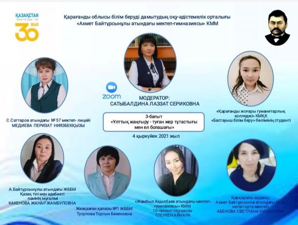Тілдер мерекесіне орай ұйымдастырылған ZOOM арқылы onlin режимде " Алаштың Ахметі" тақырыбында lV облыстық ғылыми- тәжірибелік конференцияға