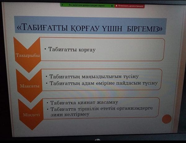 10 "Б" сыныбында "Табиғатты қорғау үшін біргеміз" тақырыбында сынып сағаты өтті. Сынып жетекшісі Жаймина М.А.