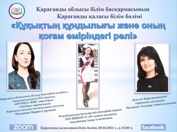 "Құқықтың құндылығы және оның қоғам өміріндегі рөлі" тақырыбында ZOOM платформасы арқылы тікелей эфир өтті. Бүгінгі таңда ең өзекті мәселелердің бірі-балалардың құқықтары мен мүдделер…