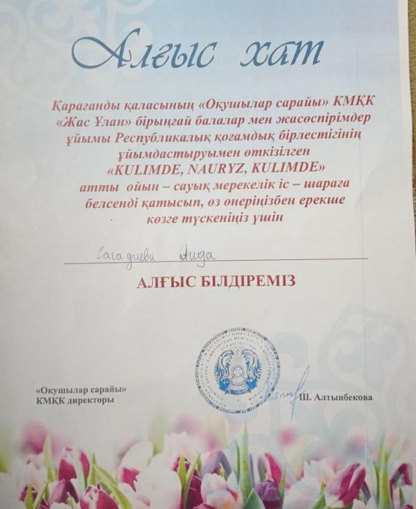 "Жас Ұлан" бірыңғай балалар мен жасөспірімдер ұйымы Республикалық қоғамдық бірлестігінің ұйымдастыруымен өткізілген "Күлімде,Наурыз,Күлімде" атты мерекелік іс - шараға белсене қа…