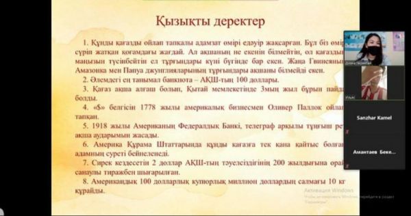 Қаржылық сауаттылық апталығы аясында 8 “А” сынып оқушыларына “Ақша - уақыт тынысы” тақырыбында сынып сағаты өтті. Сынып жетекшісі: Муталхан Куланда.