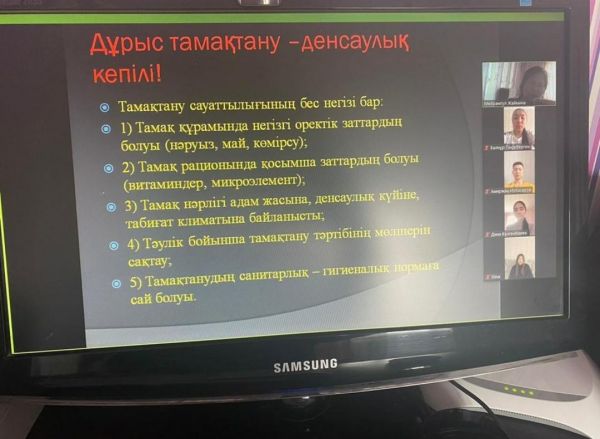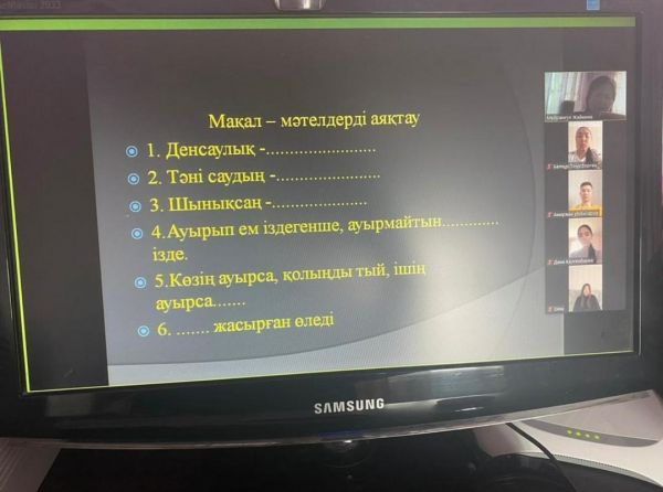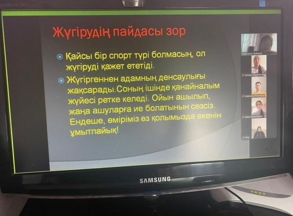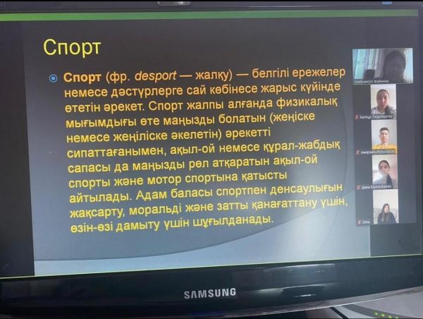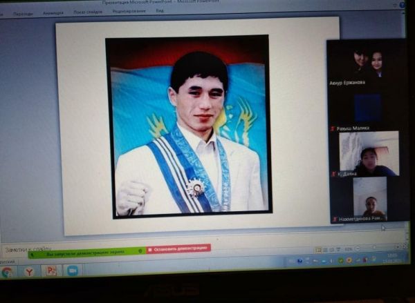 7"Б" сынып оқушылары мен сынып жетекші: Дадиева Г.К. "Дене шынықтырудан Олимпиадалық шыңдарға дейін" Олимпте Олимпиада алауын жағу тақырыбында онлайн режимінде тәрбие сағаты өткі…